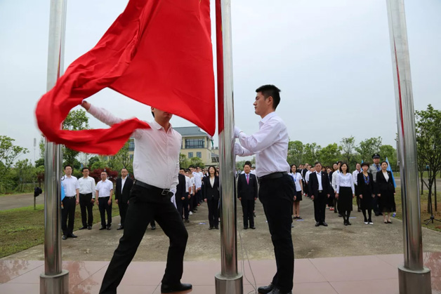 上午8時50分,威勝控股董事會吉主席、威勝控股本部領導、電氣董事會成員及電氣全體同仁齊聚升旗廣場。升旗儀式由威勝電氣總裁曾辛先生主持,儀式在莊嚴的升國旗、唱國歌中隆重開啟,全體電氣人整裝肅立,向國旗致敬,用高昂的士氣和拳拳赤子心唱出了對祖國的熱愛。