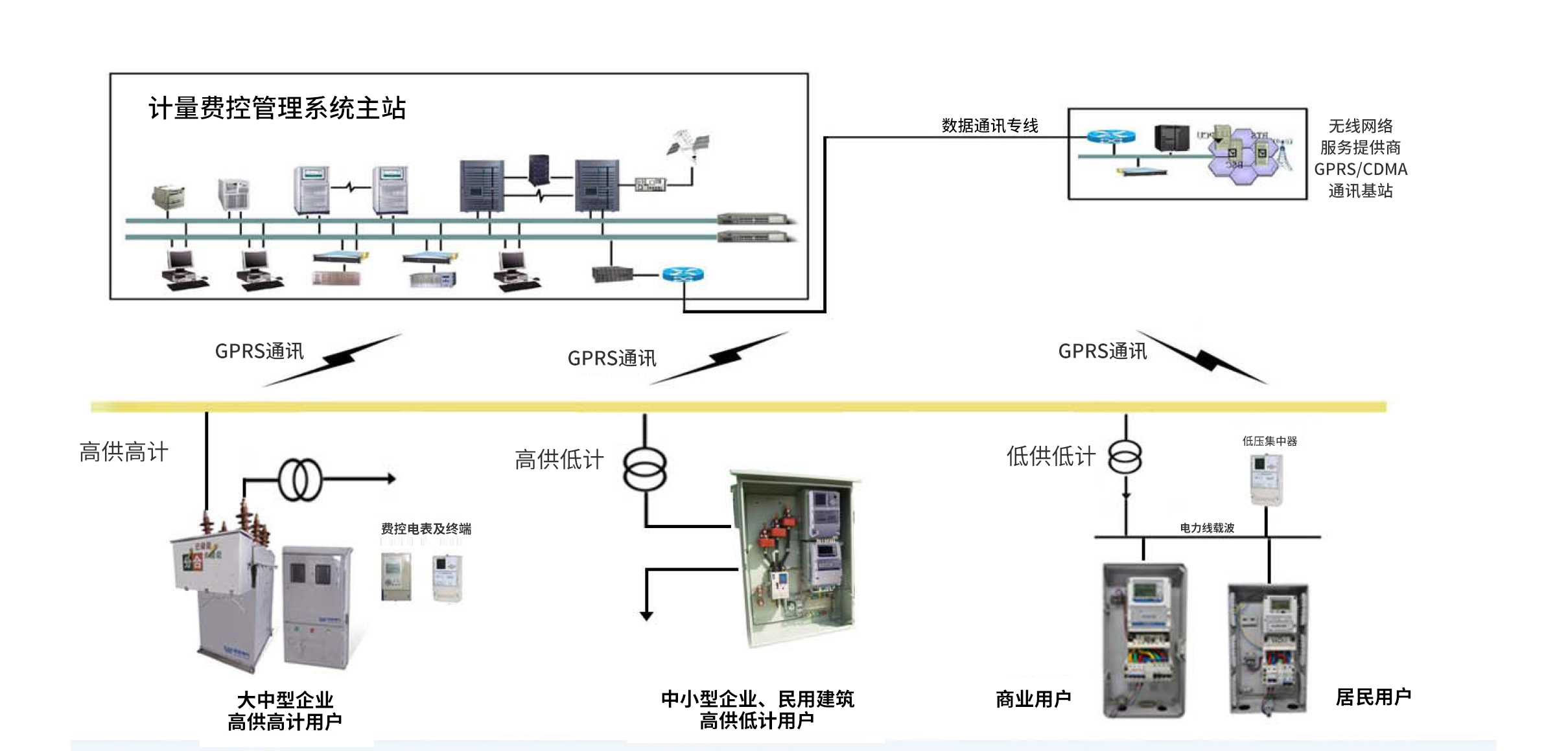 低壓預付費售電管理方案適用于中小型工商業用戶(配電容量500kVA及以下的專變用戶),其具有精確計量、遠程抄表、預付費售電管理、防竊電、遠程控制及故障自動隔離等多重功能。