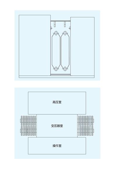 1、 箱變結(jié)構(gòu)分為變壓器本體、高壓室、低壓室、檢測室、開關(guān)操作室和熔斷器室六個(gè)部分,可按“目”字型或“品”字型排列。