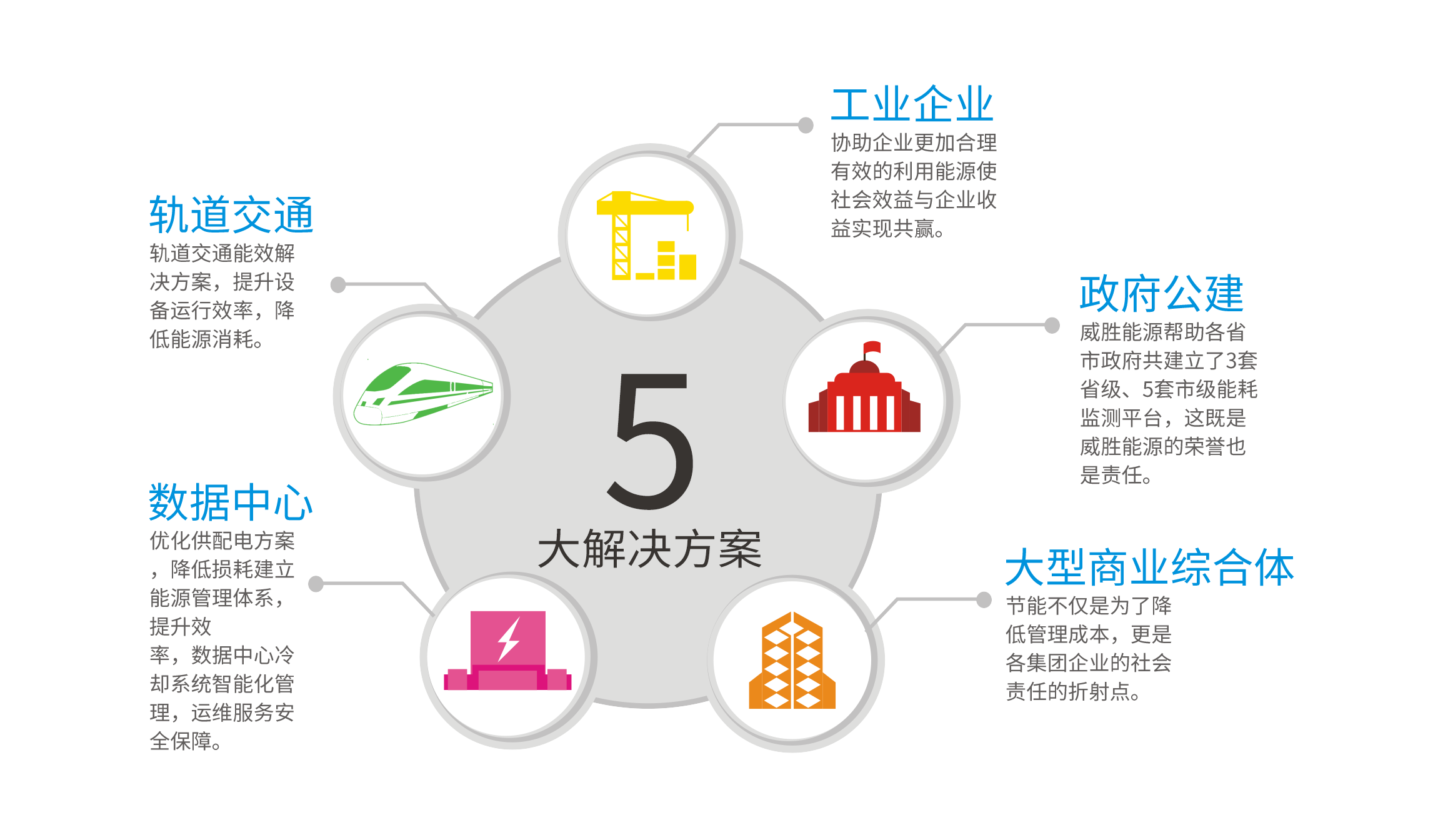 威勝的整體能效解決方案,是針對工業(yè)企業(yè)、軌道交通、數(shù)據(jù)中心、大型商業(yè)綜合體、政府公建等大型用電客戶構建的一套用能解決方案。該方案包括水、電、氣、熱等多種能源種類,以能源購入、能源存儲、能源消耗等能源使用過程為導向的全生命周期用能管理方案,竭力幫助用戶減少能源損耗、提高能源利用率。